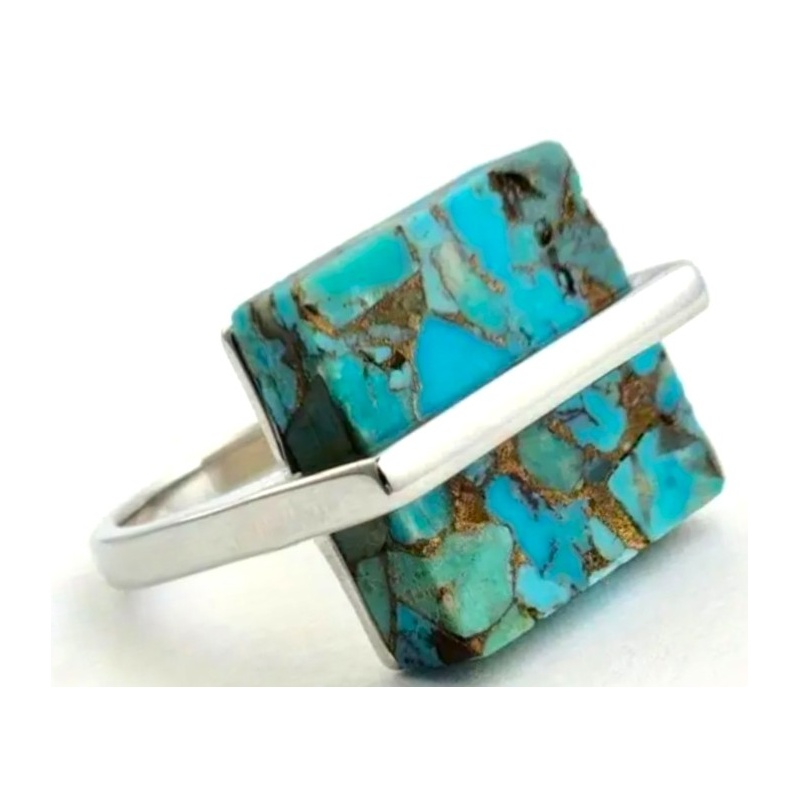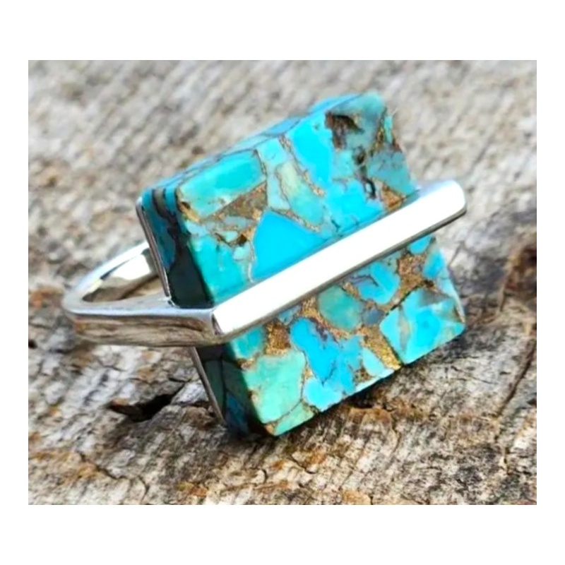 Hõbedane, türkiissinise mosaiikkiviga bohemian stiilis vastupidav sõrmus.